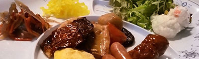 | メニュー例 | ご飯・魚・煮物・納豆・玉子・カレー・コーヒー・ウインナー・サラダ等、和洋バイキング (※メニューの内容は食材の入荷状況により変わる場合がございます。) |